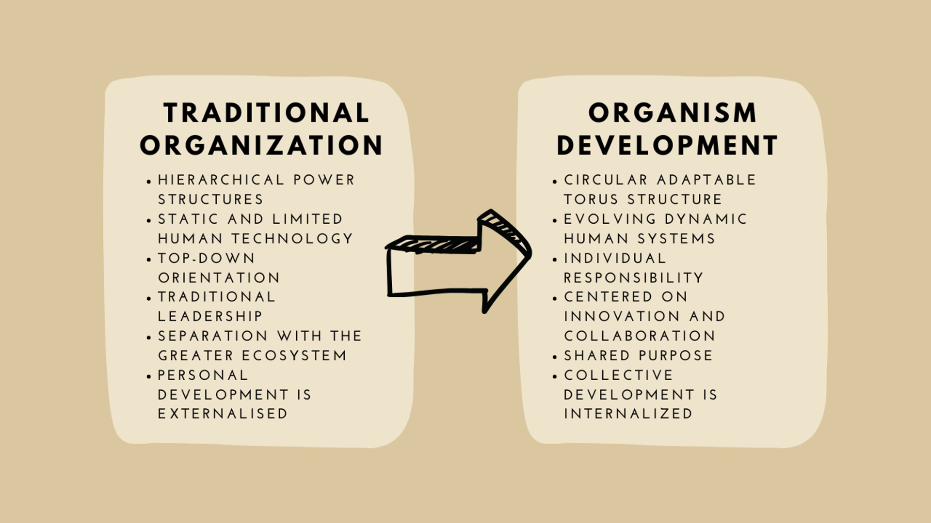 Organism Development: propose tool for you to transform your organization into a living organism – flexible, adaptive, and self-organizing.